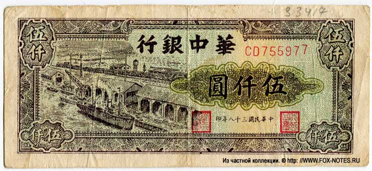 S3418 5,000 yuan 1948 Av purple and green, Rv blue