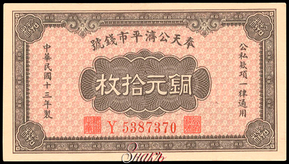 Fengtien Public Exchange Bank 10 Coppers 1924