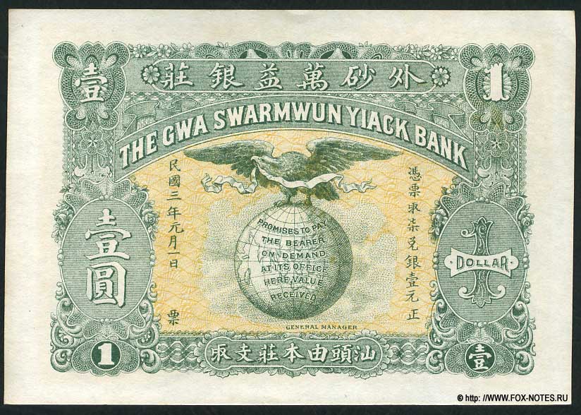 The GWA Swarmwun Yiack Bank banknote issues. (China)