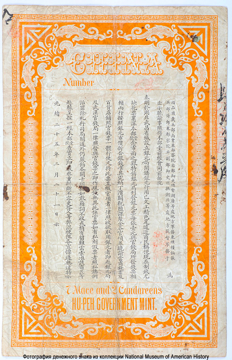 $1 in silver - Yr. 25 (1899). 7 mays 2 candarines. 129 x 205 mm [5.1]