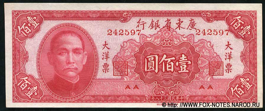 Kwangtung Provincial Bank 100 dollars 1949