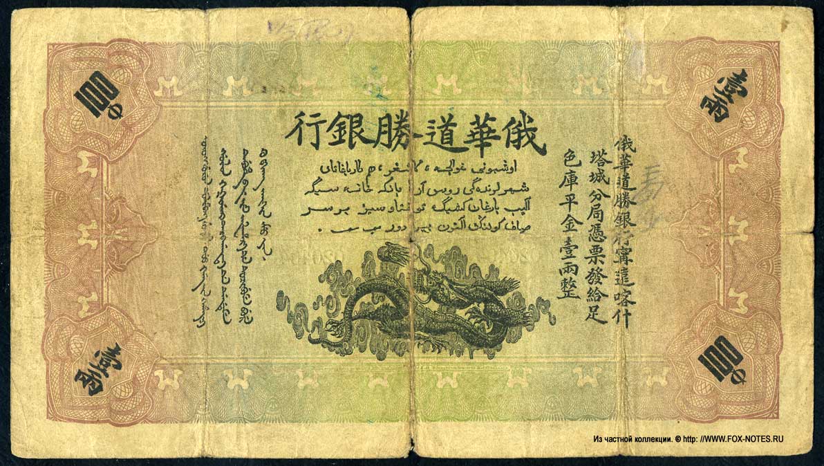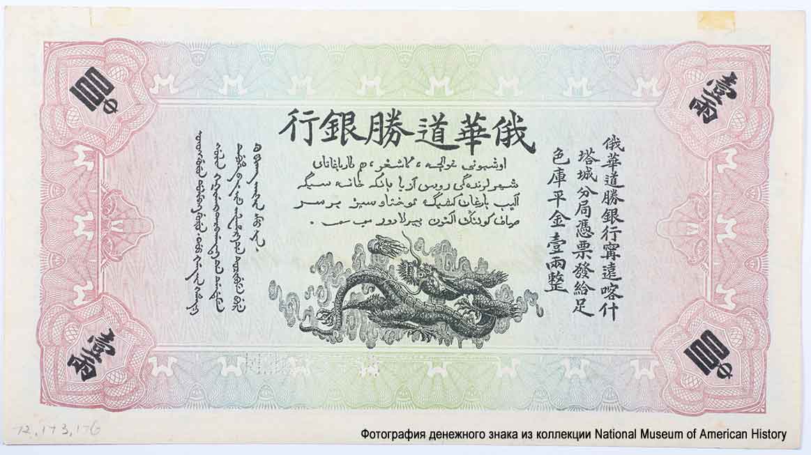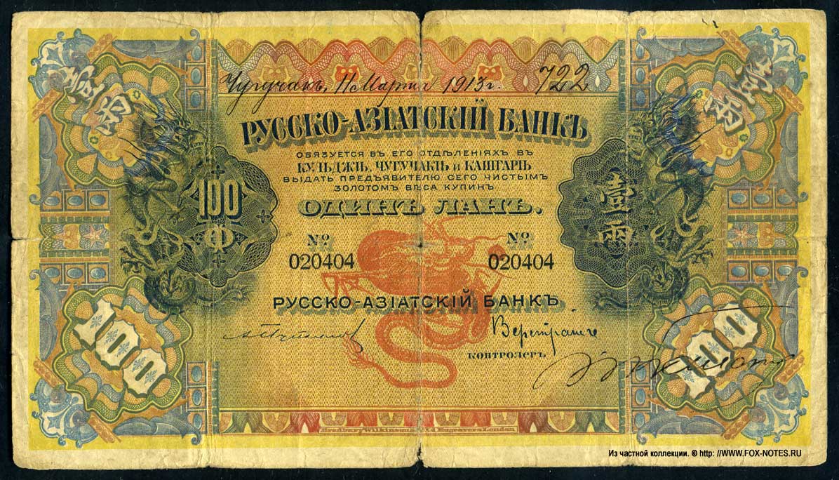 - Russian-Asian Bank. Branches in Kulja, Chuguchak and Kashgar. Issue of banknotes 1913-1918.