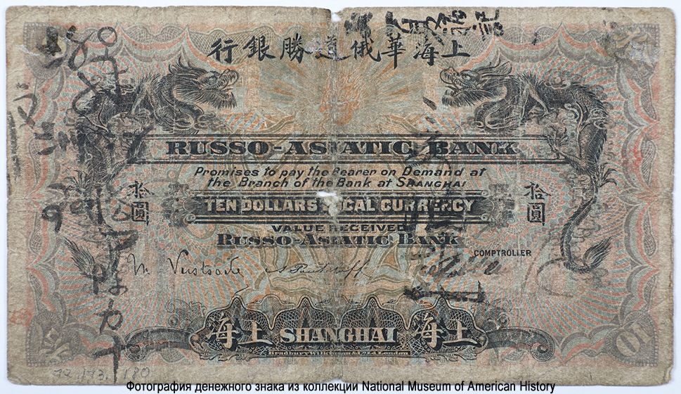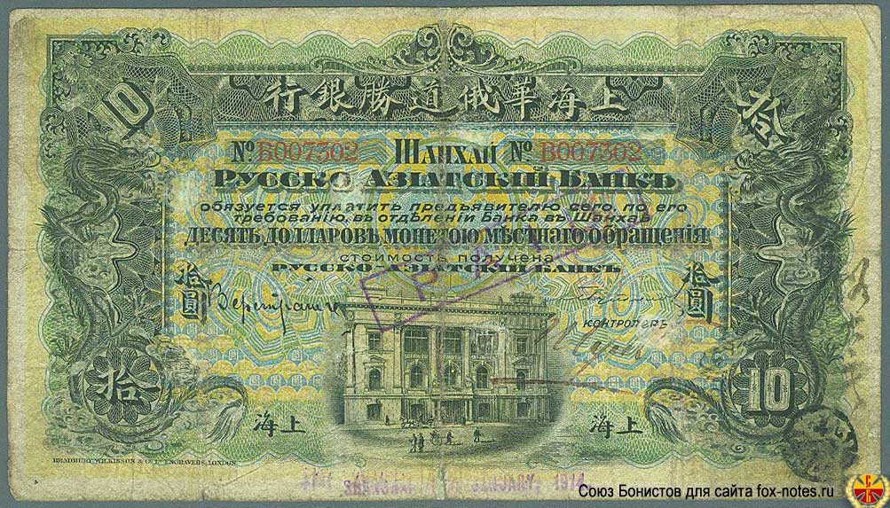 - Russian-Asian Bank. Shanghai branch. Issue of banknotes 1914-1917 (Type 3)