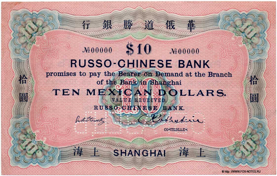 111111 Issues of Russian-Chinese Bank - Russian-Asian Bank. Paper Currency Directory = Russian-Chinese Bank. Shanghai branch. 1901-1904 Mexican $10 note -222222