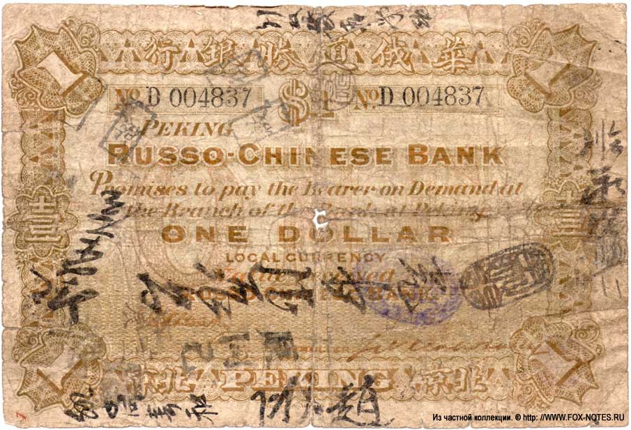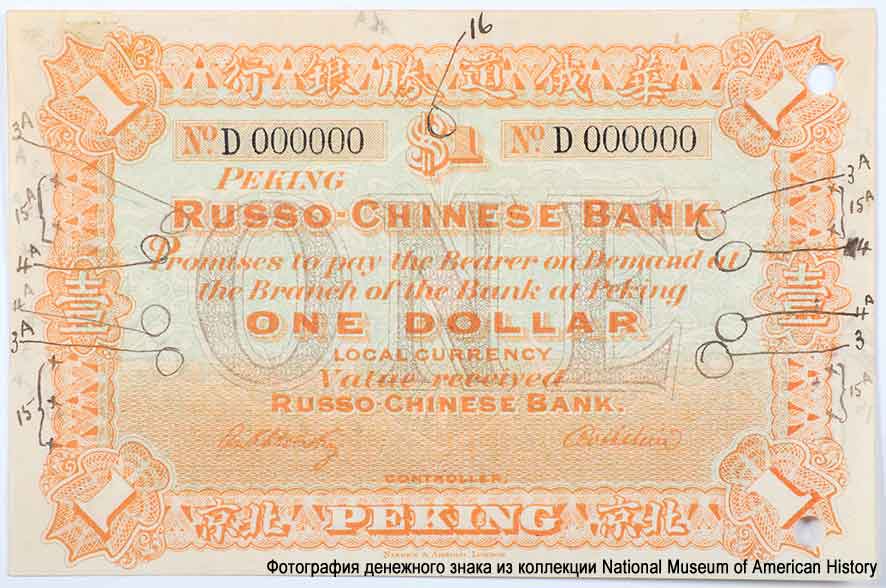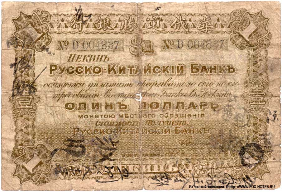 111111 Issues of Russian-Chinese Bank - Russian-Asian Bank. Paper Currency Directory = Russian-Chinese Bank. Beijing branch. Banknote 1 dollar coin of local circulation 1903 -222222