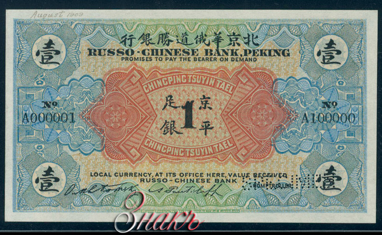 - Russian-Chinese Bank. Beijing branch. Issue of banknotes 1907