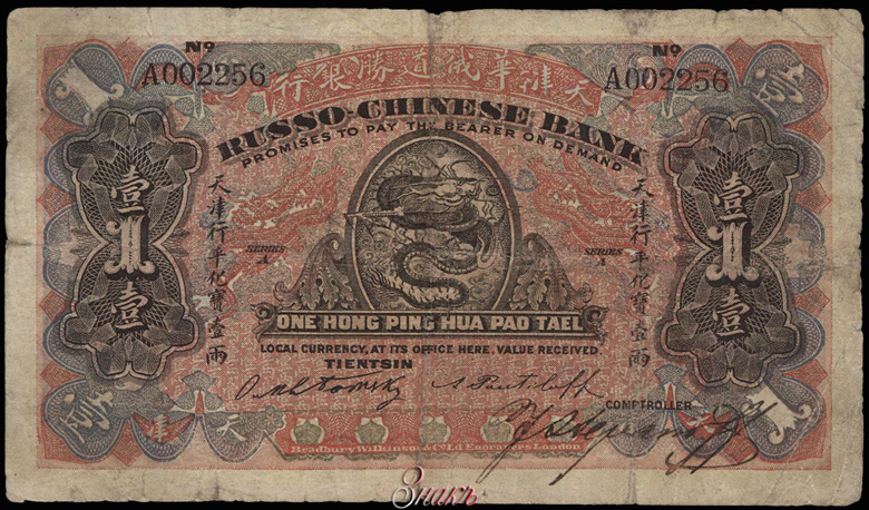 111111 Issues of Russian-Chinese Bank - Russian-Asian Bank. Paper Currency Directory = Russian-Chinese Bank. Tien Jing branch. 1 liang Hong Ping Hua Pao banknote 1907. -222222