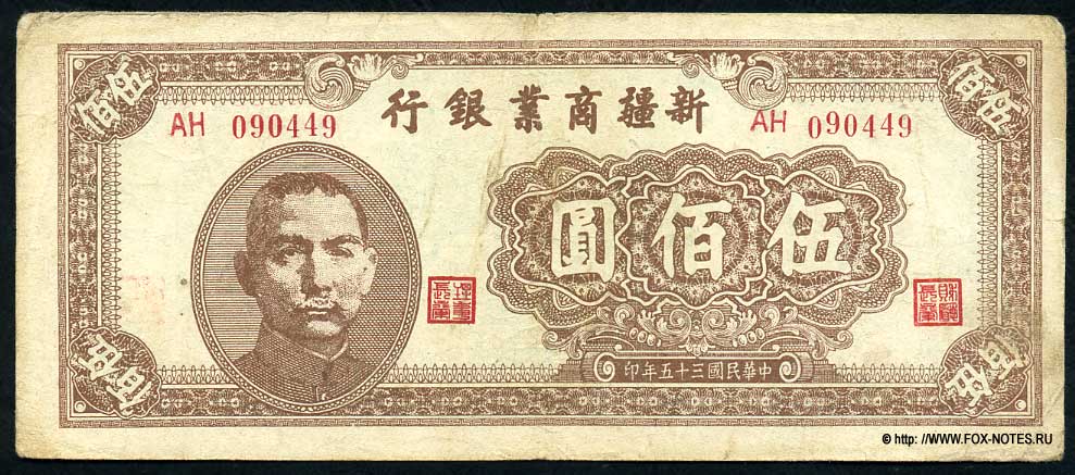 Sinkiang Commercial and Industrial Bank 500 юаней 1946