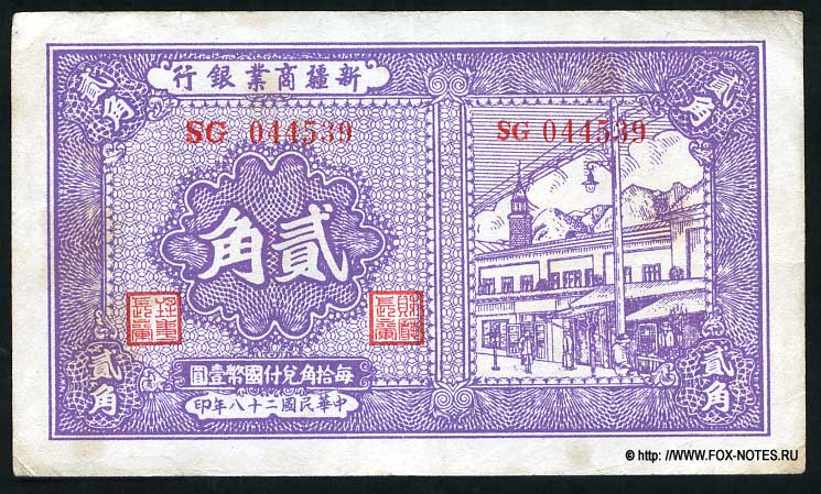 111111 - Banknotes issued in Xinjiang Province. Sinkiang Commercial and Industrial Bank banknote issues. (China) -222222