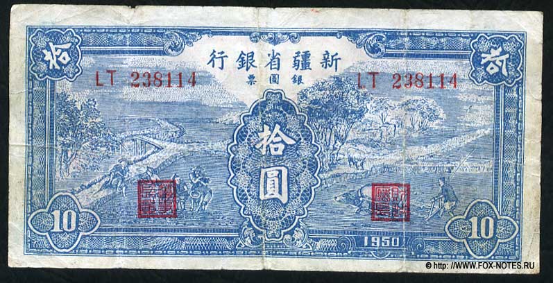 Sinkiang Provincial Bank 10 yuan silver 1950Notes: