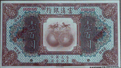 333333-The Fu-Tien Bank  100 Dollars 1921-444444