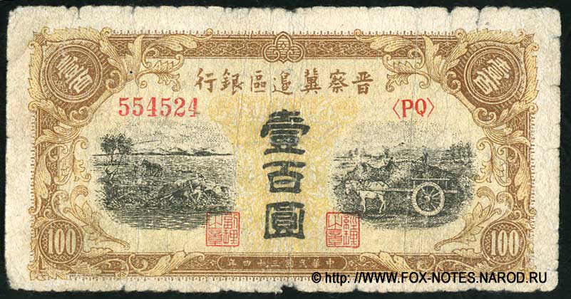 Bank of Shangsi, Chahhar and Hopei 100 yuan 1945