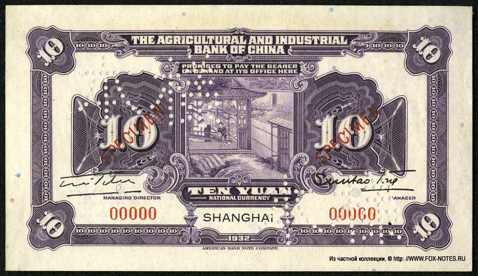 Agrikultural and Industrial Bank of China 10 YUAN 1932