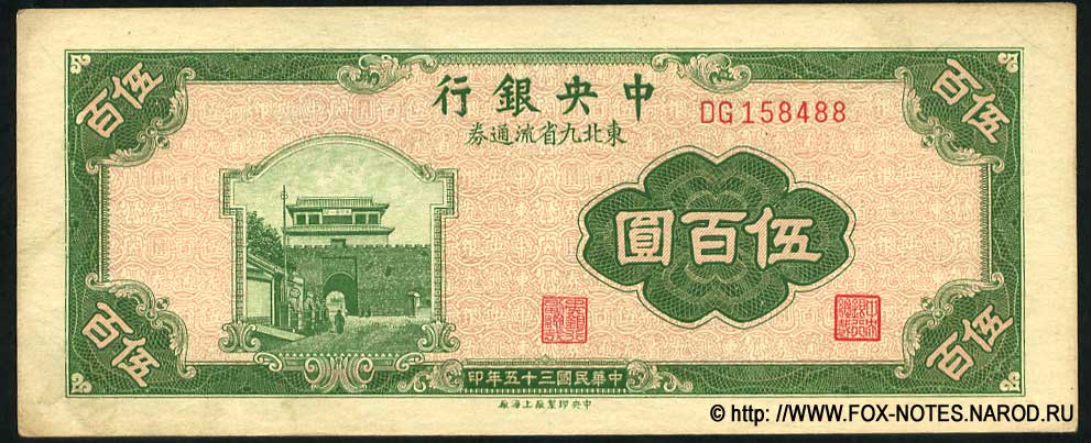 500 yuan - ND (1946).  Shanghai seal