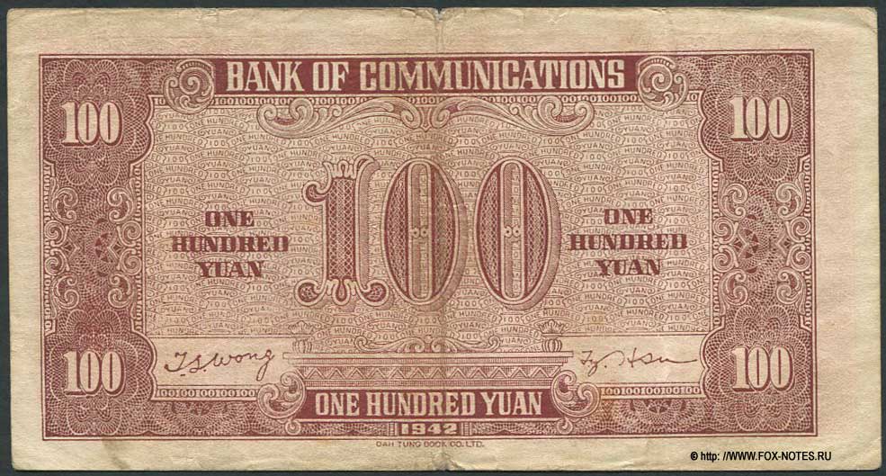 Bank of Railways RMB 100 1942