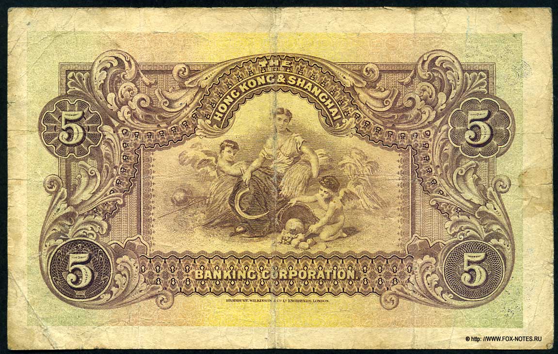 Hongkong and Shanghai Banking Corporation Limited 行銀豐滙海 上港香商英). 5 Dollars 1923