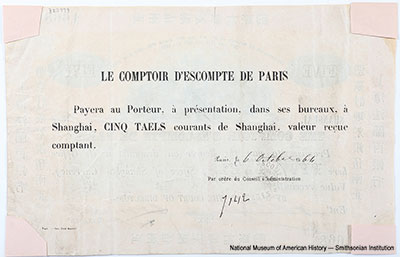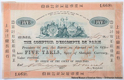 333333-Comptoir D'Escompte de Paris (上海法蘭西銀行). 5 tael 1866-444444