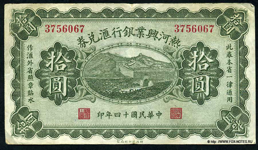 Hsing Yen Bank of Jehol/Industrial Development Bank of Jehol banknotes. (China)