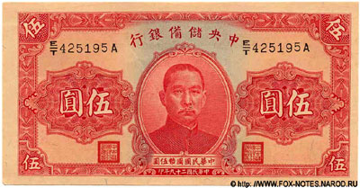 333333-The Central Reserve Bank of China 5 YUAN 1940-444444