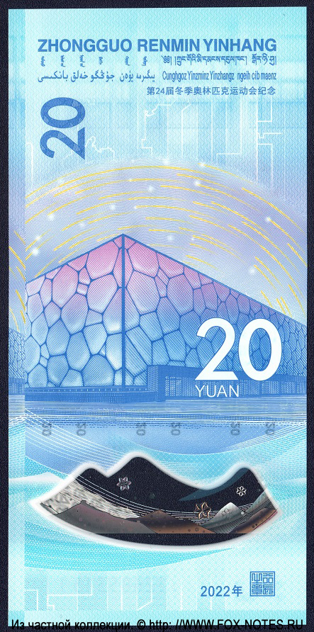 20 yuan - 2022. Commemorative issue 2022 dedicated to the XXIV Winter Olympic Games in Beijing .