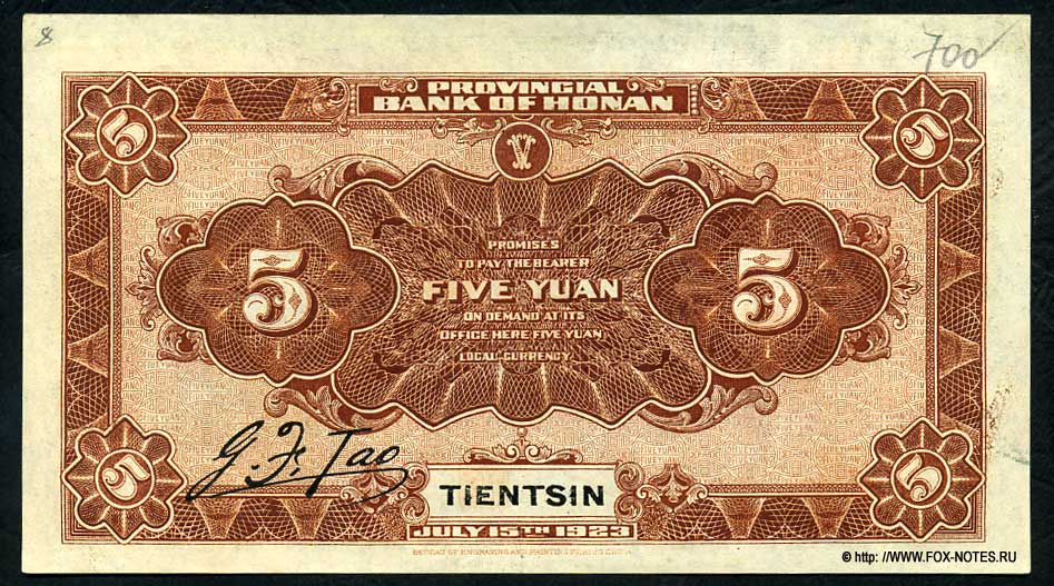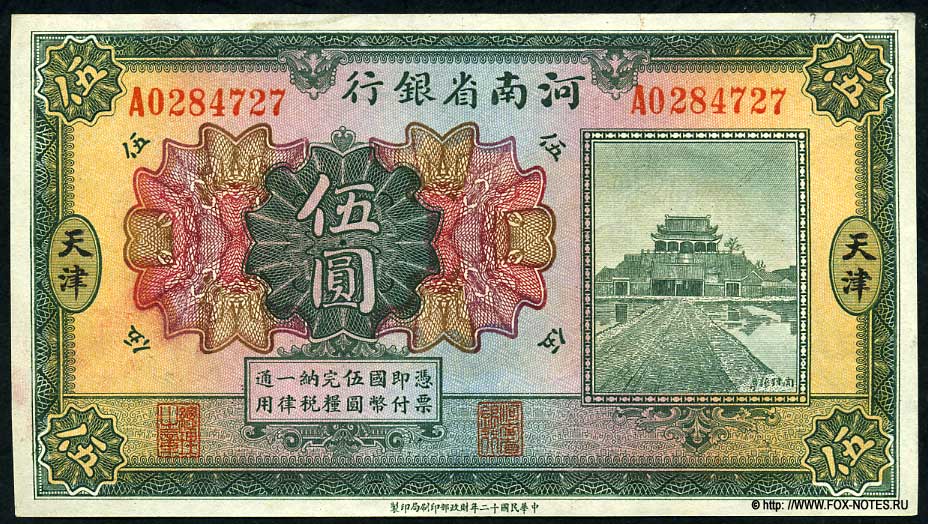 5 yuan - JULI 15 th 1923. TIENTSIN.