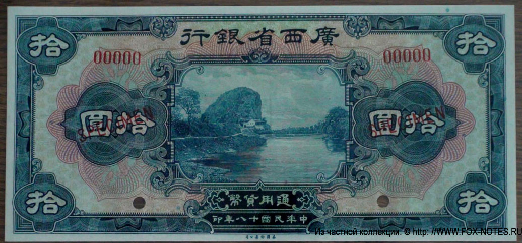 Provincial Bank of Kwangsi 10 Dollars 1929 SPECIMEN