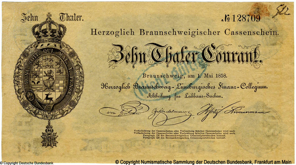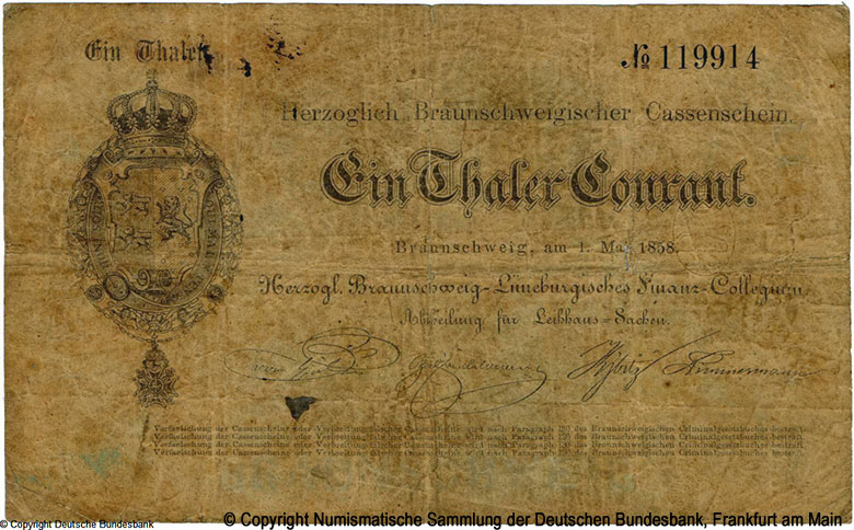 - Katalog der Banknoten des Herzogtums Braunschweig (Catalogue of banknotes of the Duchy of Brunswick)