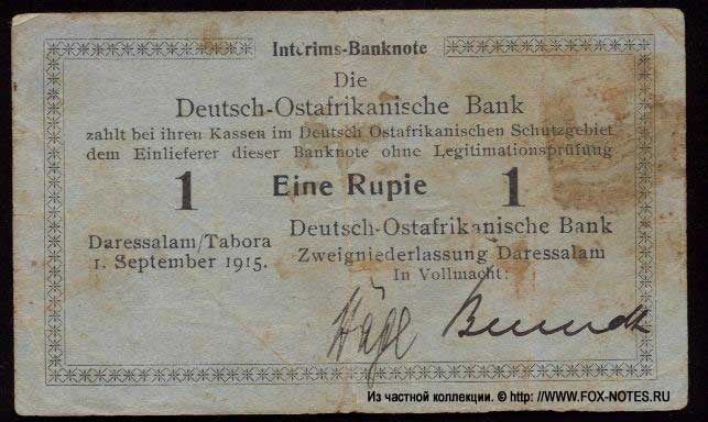 Die Deutsch-Ostafrikanische Bank. Interims-Banknote.1 Rupien. 1. September 1915.
