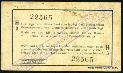 333333-Deutsch-Ostafrikanische Bank. Interims-Banknote. 1 Rupien. 1. Februar 1916.-444444