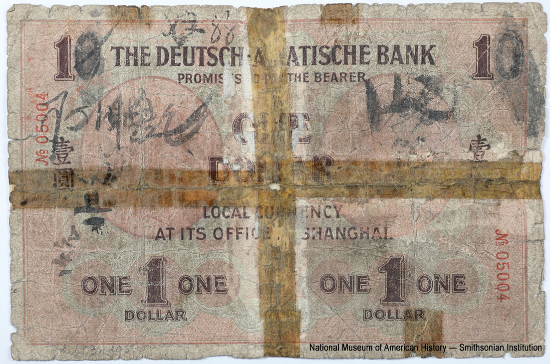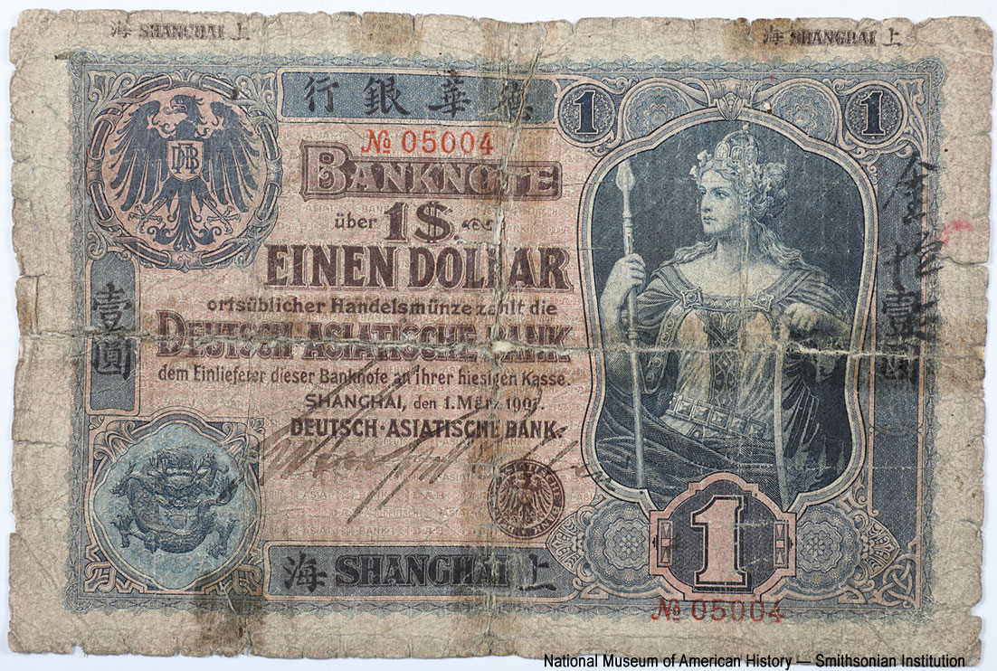 Banknote über 5 Dollar. Shanghai, den 1. März  1907. Banknote über 10 Dollar. Shanghai, den 1. März  1907. Banknote über 25Dollar. Shanghai, den 1. März  1907. Banknote über 50 Dollar. Shanghai, den 1. März  1907. {SH2.0:  §II. F-A/a}  {§III}  1.1. Issue: Deutsch-Asiatische Bank (行銀華德, German-Asian Bank). Filiale  nach Shanghai. Banknote. Shanghai, den 1. März  1907. (Dollar) (1907 banknotes, in dollars) 3.1.Rosenberg H. Grabowski H.  Die deutschen Banknoten ab 1871. H.Gietl Verlag &  Publikationsservice GmbH, Regenstauf.Auflage: 19., Auflage 2013/2014  (REV). (31. Oktober 2013) ISBN 978-3866465534 3.2. Grabowski H. Die deutschen Banknoten ab 1871. Battenberg Gietl  Verlag GmbH. Auflage: 21., Auflage 2018 (7. Dezember 2017) {Catalog code - "Ro"} 3.3. Albert Pick Jens-Uwe Rixen (Bearb. Hans L.  Grabowski) Papiergeld-Spezialkatalog Deutschland. Auflage 3. Gietel  Verlag, 1998.  3.4. Standard Catalog of World Paper Money,  Specialized Issues. Krause Publications; Twelfth Edition (12) (18. Dezember 2013)  3.5. Smith Ward D., Matravers Brian. Chinese Banknotes. Shirjieh Pub. June 1970.