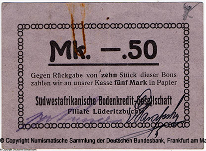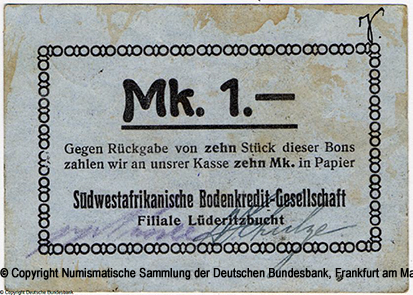 Südwestafrikanische Bodenkredit-Gesellschaft, Filiale Lüderitzbucht Bons Mk. 1. -