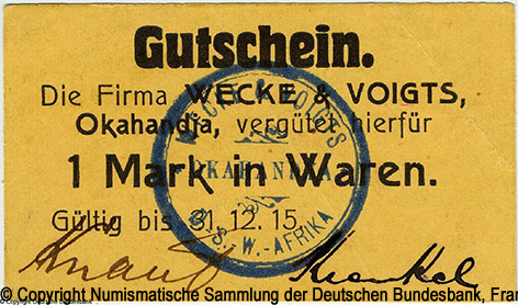 Wecke & Voigts Gutschein. 1 Mark in Waren