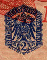 5. Reichsschuldenverwaltung seals: red or blue (blue) on the right, conger (embossed) seal on the left.