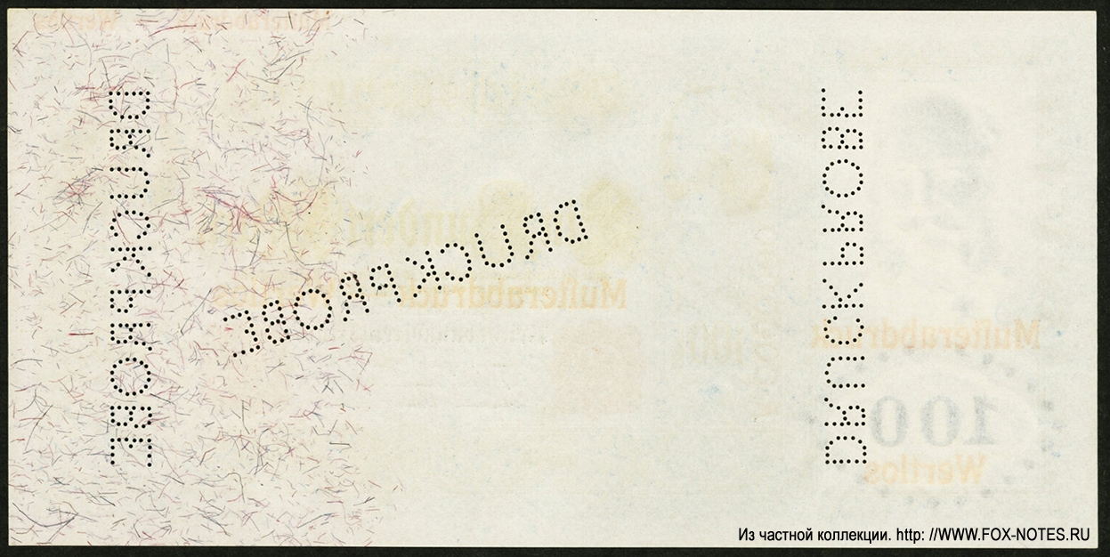 100 marks - 21. April 1910. MUSTER (SAMPLE) ndhr. per hp