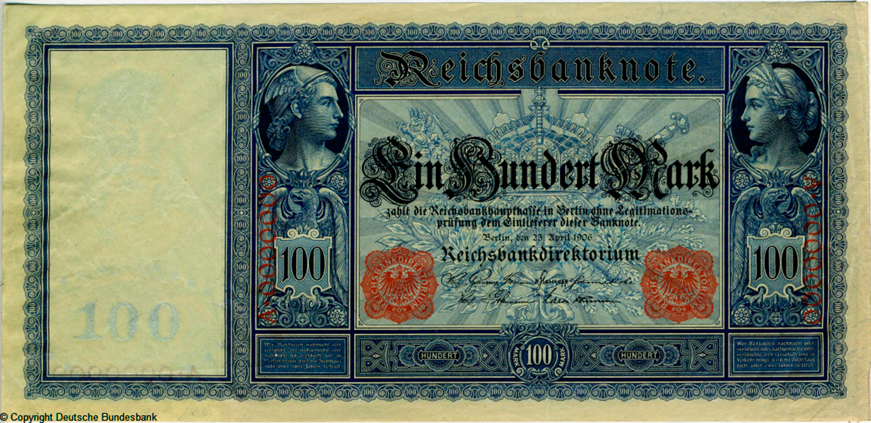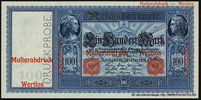 Reichsbanknote. 100 Mark. 21. April 1910. Muster