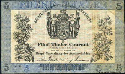 333333-Königreich Preußen Kassenanweisung. 5 Thaler Courant. 15. Dezember 1856.-444444