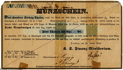333333-Königlich Sächsisches Finanz-Ministerium Münzschein. 370 Thaler 1841-444444