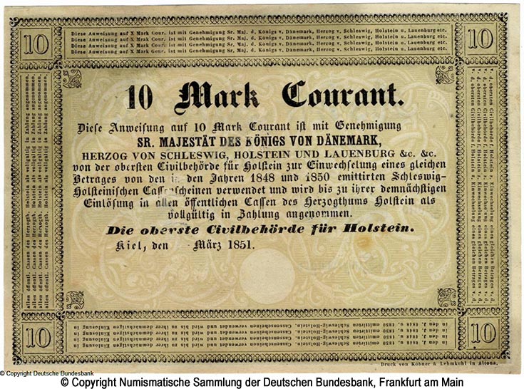 Oberste Civilbehörde für Holstein 10 марок 1851