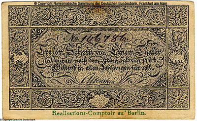 1. * 1 - Photo of a banknote from the Deutsche Bundesbank collection, Frankfurt am Main. © Copyright Numismatische Sammlung der Deutschen Bundesbank, Frankfurt am Main.