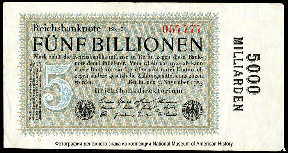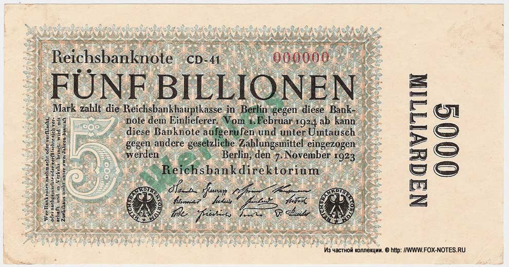 Reichsbanknote. 5 Billionen Mark. 7. November 1923.