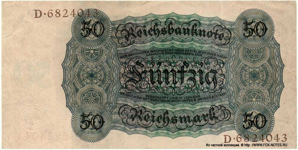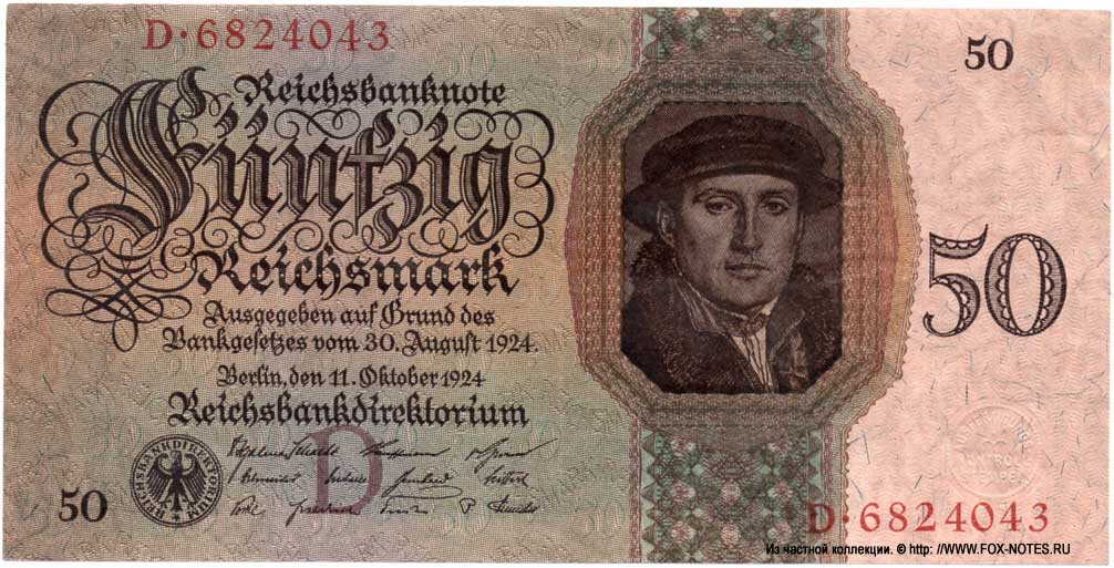 Reichsbank. Reichsbanknote. 50 Reichsmark. 11. Oktober 1924.