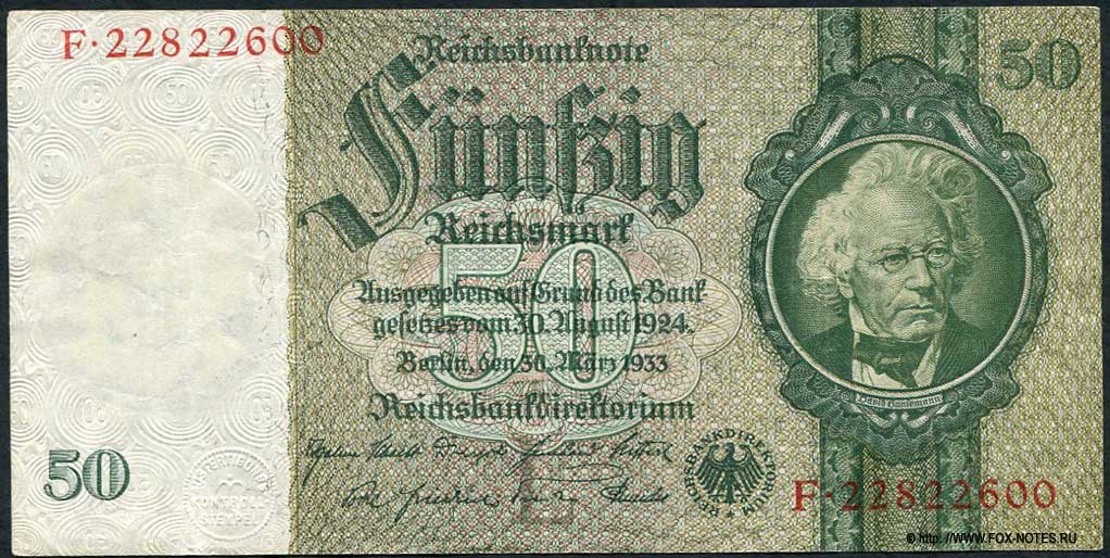 1.1. Reichsbanknote. 30. März 1933. подписывались: Reichsbankdirektorium - Dr. Hjalmar Schacht, Dreyse, Bernhard, Seiffer, Vocke, Fridrich, Fuchs, P. Scheider.