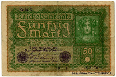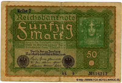 1. Reichsbanknote size. 50 Mark. 24. Juni 1919. - 140 x 110 mm.