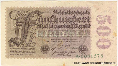 Reichsbank. Reichsbanknote. 500 Millionen Mark. 1. September 1923.