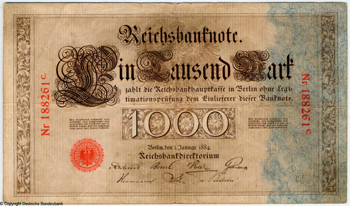 — Deutsches Reich. Reichsbank. Reichsbanknote. 1000 Mark. Type 1884 "Brauner Tausender"