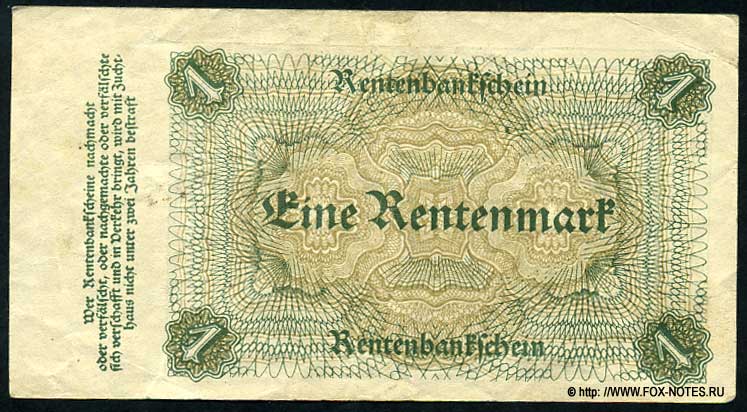 1.1. Rentenbankschein. 1. November 1923. подписывались: Deutschen Rentenbank Der Verwaltungsrat - Lenz, Brandes, Bücher, Crone-Münzebrock, Dietrich, Gennes, H. Grünfeld, Heim, Hilger, Keinath, Millington-Herrmann, Roesice, Siemens, Sorge, Urbig.