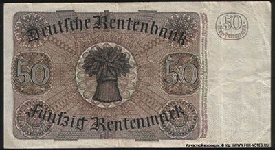 Rental bank mark 50 rental marks 1934 Notes: 1.1. Rentenbankschein. Rentenbankschein. 6. Juli 1934. подписывались: Deutschen Rentenbank Der Verwaltungsrat - Granzow, Kissler, Lipp, Dr. Szagunn, Dr. Kokotkiewicz. * * * 2.1. No, it isn't. * * *