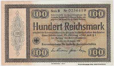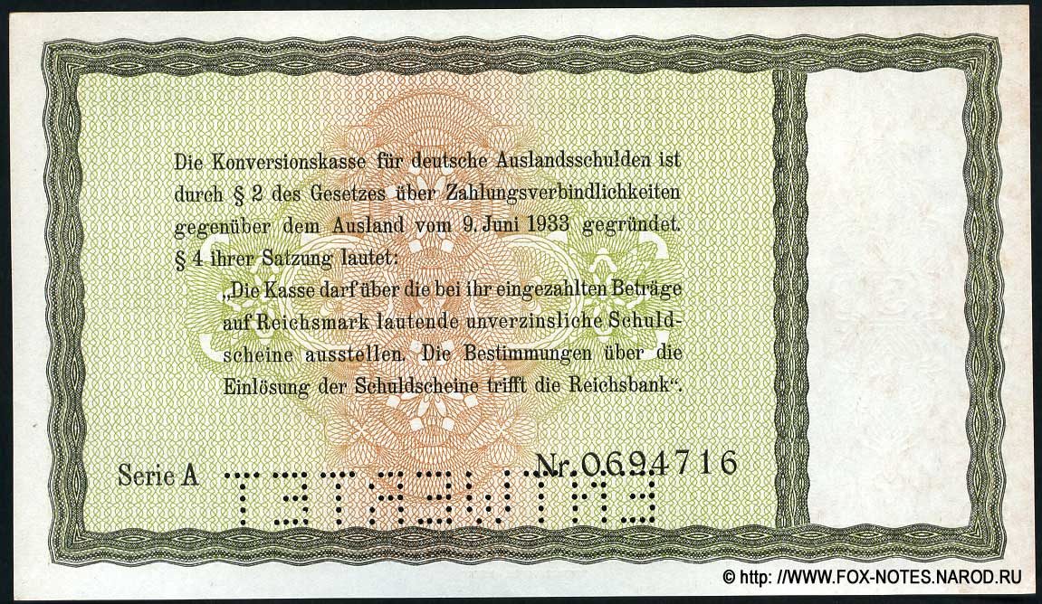Konversionskasse für deutsche Auslandsschulden 100 mark 1933