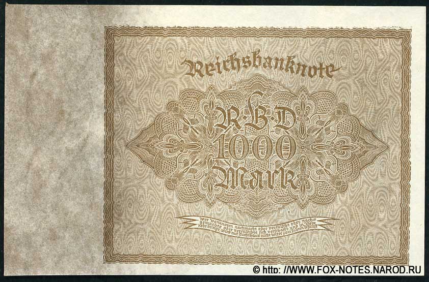 REFERENCE: 1922 issues of the Reichsbanknote. Reichsbanknots of the issues of 1919-1920 were in circulation until 1925. Options for printing houses, numbering boxes, etc.