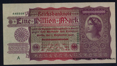 REFERENCE: Issues of Reichsbanknote 01.09.1923-15.09.1923 Reichsbanknots of the 1923 issues were in circulation until 1924. Period of hyperinflation in Germany.